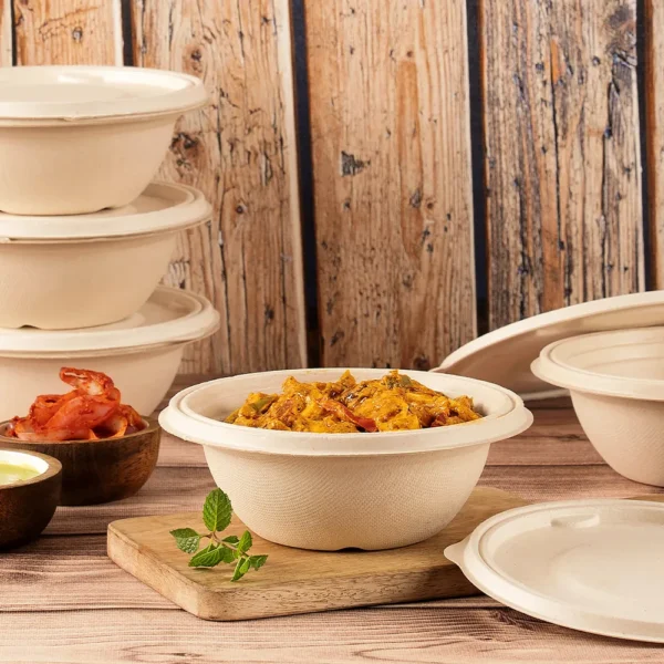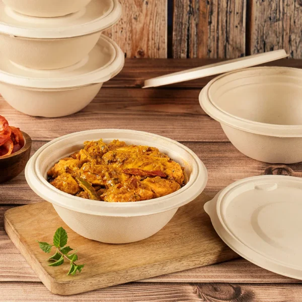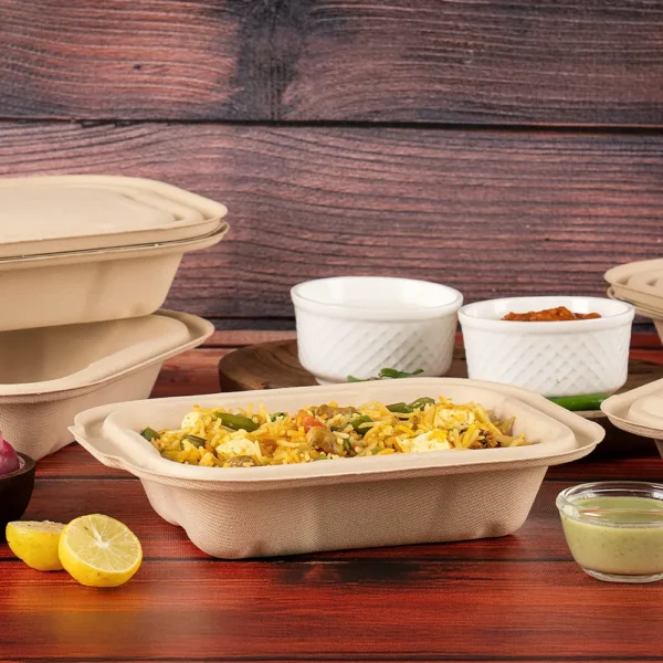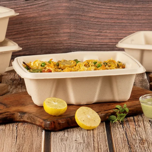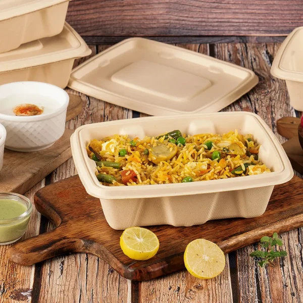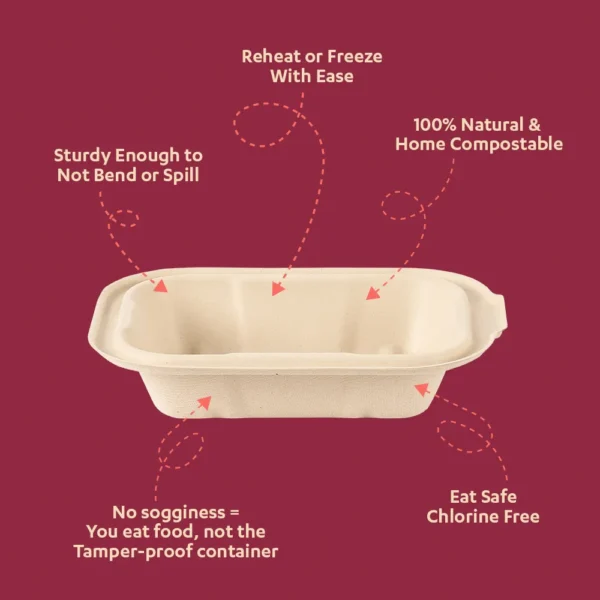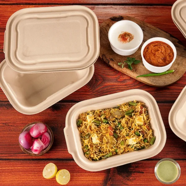 - Perfect bagasse delivery container for restaurants, QSRs, canteen, etc.