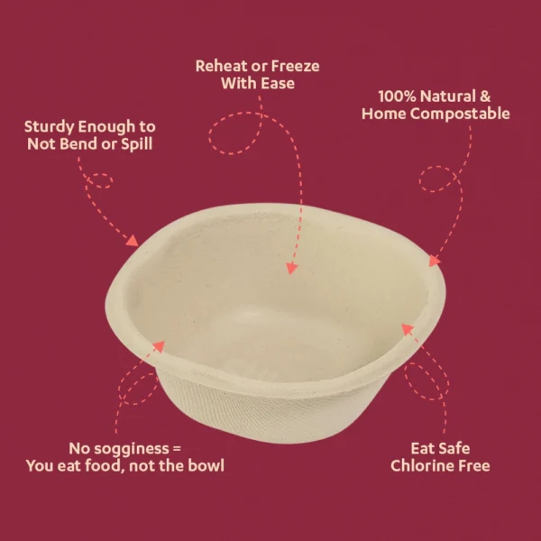 - 100% Food-grade, non-toxic, and chlorine free sugarcane bowl.
