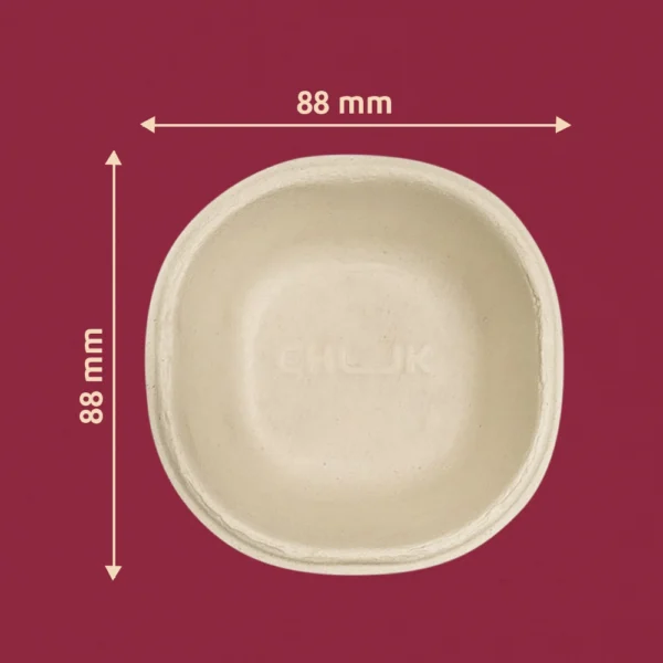 Your serving game will be spot on with Chuk eco-friendly bowl! Crafted from sugarcane bagasse, this sturdy disposable bowl is perfect whether you’re dishing out a delightful dessert like gulab-jamun or ice-cream or serving savory sides such as dips and sauces. This 120ml bowl ensures a clean, compostable solution with every use.