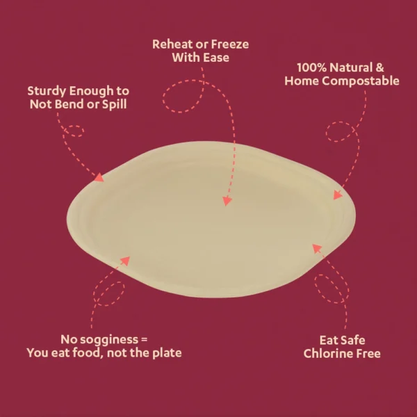 Just Right Plate! Chuk 9” compostable sugarcane bagasse plate is the perfect companion to your meals. Not too big for a plate of biryani, not too small for a serving of dal-chawal. It’s the jack-of-all-trades, master of all plates! This eco-friendly disposable is sturdy, stylish, and sustainable. Your conscience and customers will thank you!