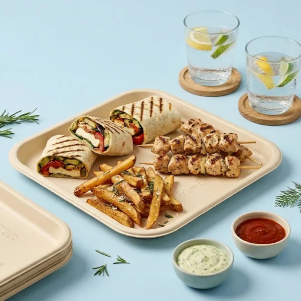Chuk 12” compostable bagasse plate is the ultimate stage for your culinary creations. From jumbo burgers to sprawling Indian thalis, it handles it all with style. Perfect for picnics, parties, or just a fancy Friday night in. Strong, sturdy, and oh-so-stylish, it’s the eco-friendly choice that doesn’t compromise on anything.